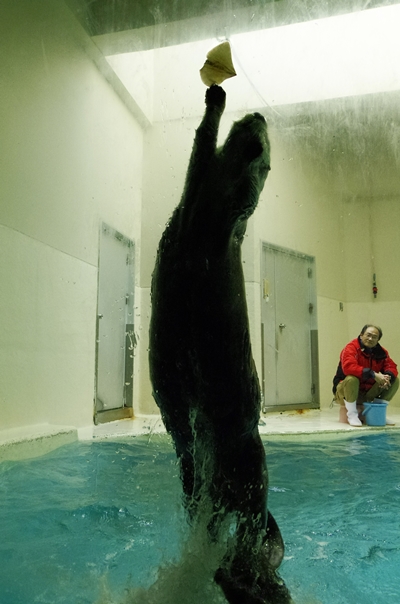 少し早いが9時40分のラッコの食事タイムを見に