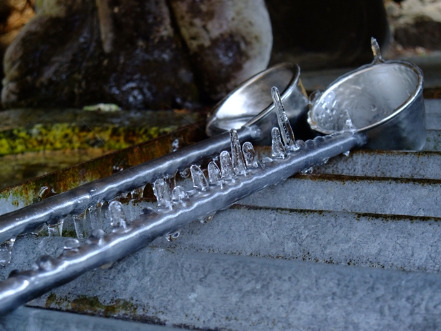 国宝仁科神明宮、氷っていました。